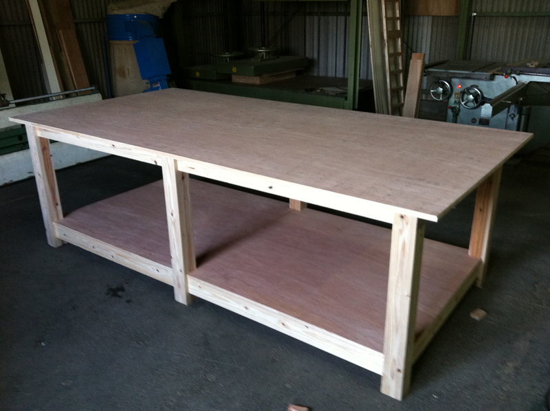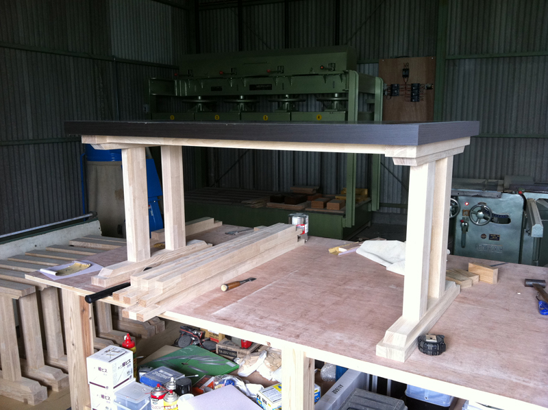 テーブルの脚の部分でした。組み上がり、天板を乗せて仮組。