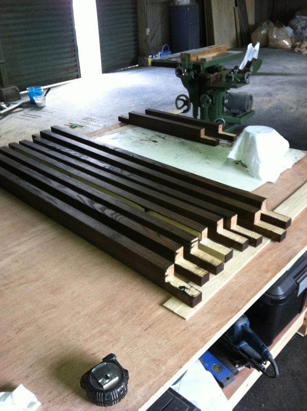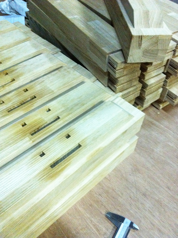 現在製作中のテーブルの脚を加工してます。5台もあるとホゾ加工が大変です。