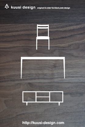 シンプルにウォールナットの背景に椅子とテーブルとローボードのアイコンを白抜きにしたものです。