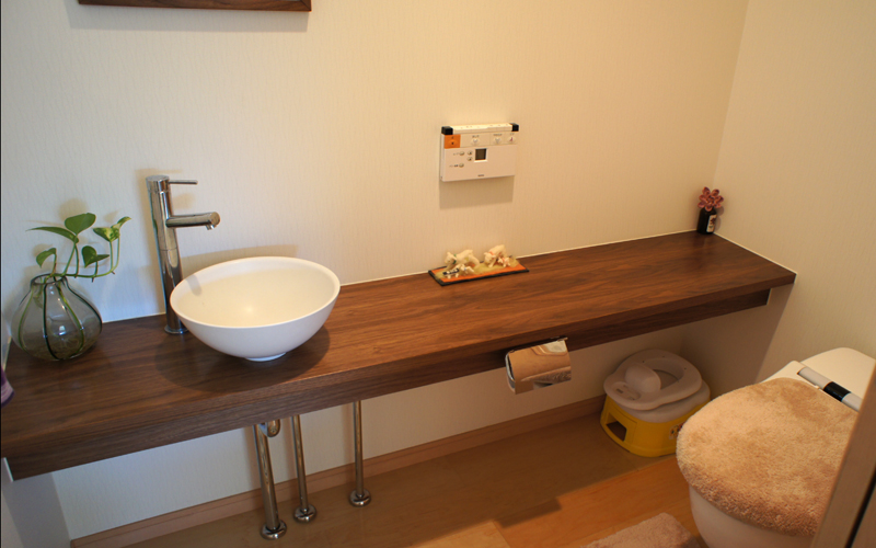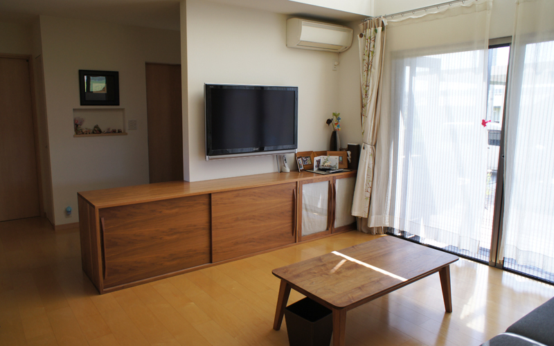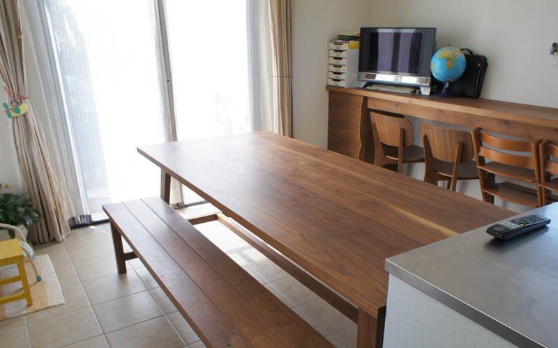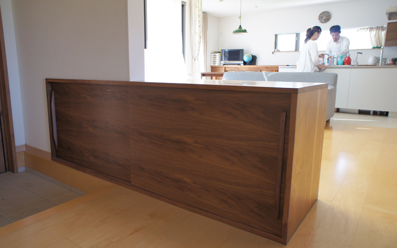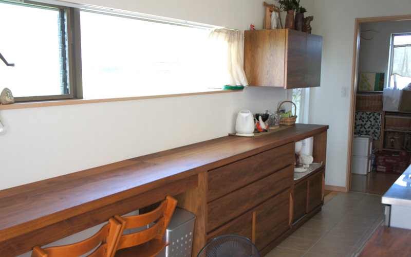 フルオーダーの家具・造り付け家具は建築中から打ち合わせをして部屋にピッタリの収納や棚を作る事ができます。